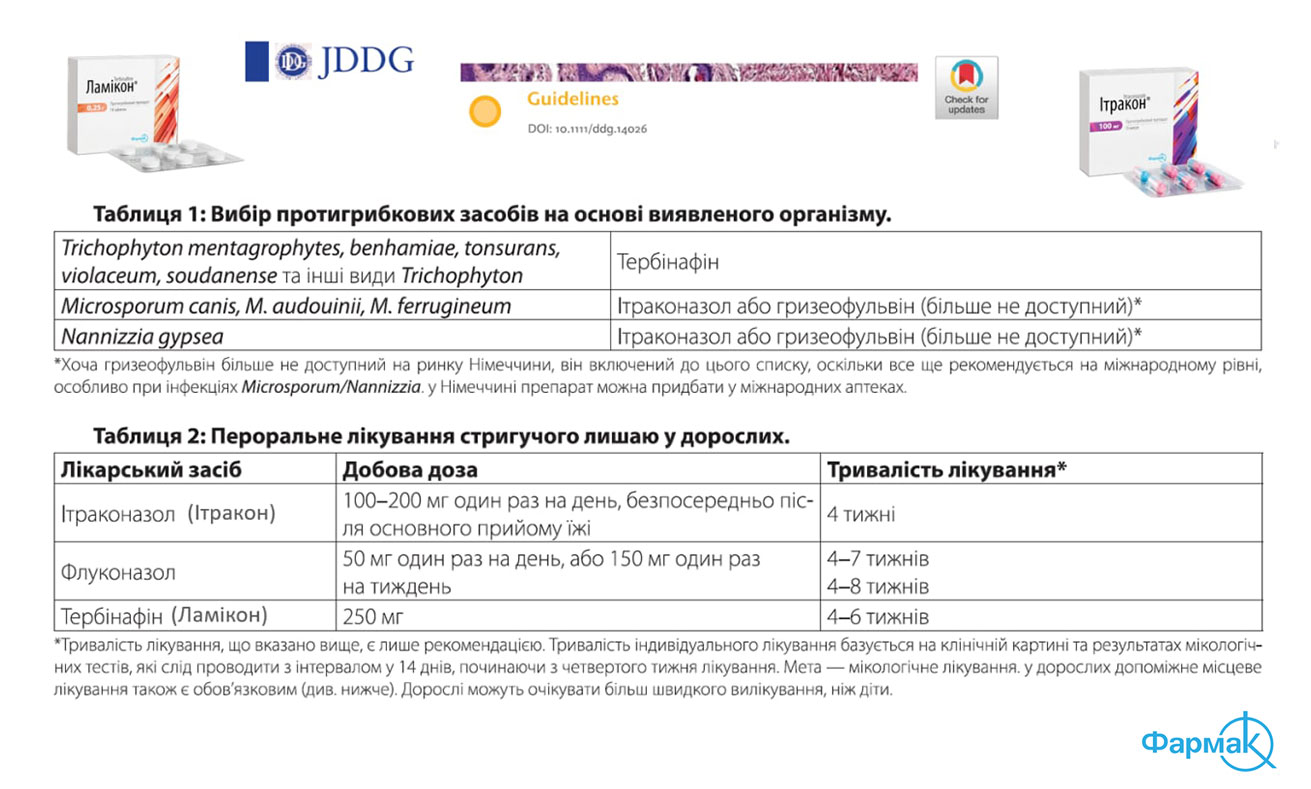 Схеми лікування лишаю